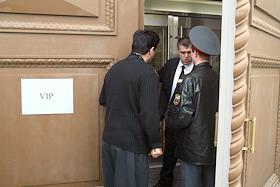 Охрана на входе в центральный выставочный зал "Манеж" во время церемонии его открытия после восстановления.