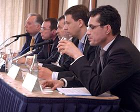 Пресс-конференция по итогам семинара на тему "Информационно-технологическое обеспечение обязательного страхования автогражданской ответственности". Пресс-конференция прошла в гостинице "Балчуг-Кемпински".