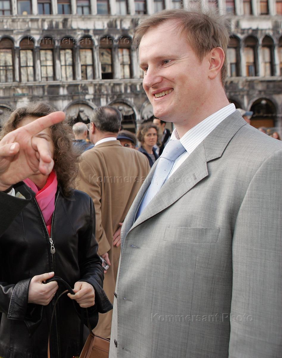 Культурные встречи "Россия-Италия" в Венеции. Концерт Кубанского казачьего хора. Совладелец "Военно-строительного управления Москвы" (ВСУМ) Алексей Душутин на площади Сан-Марко.