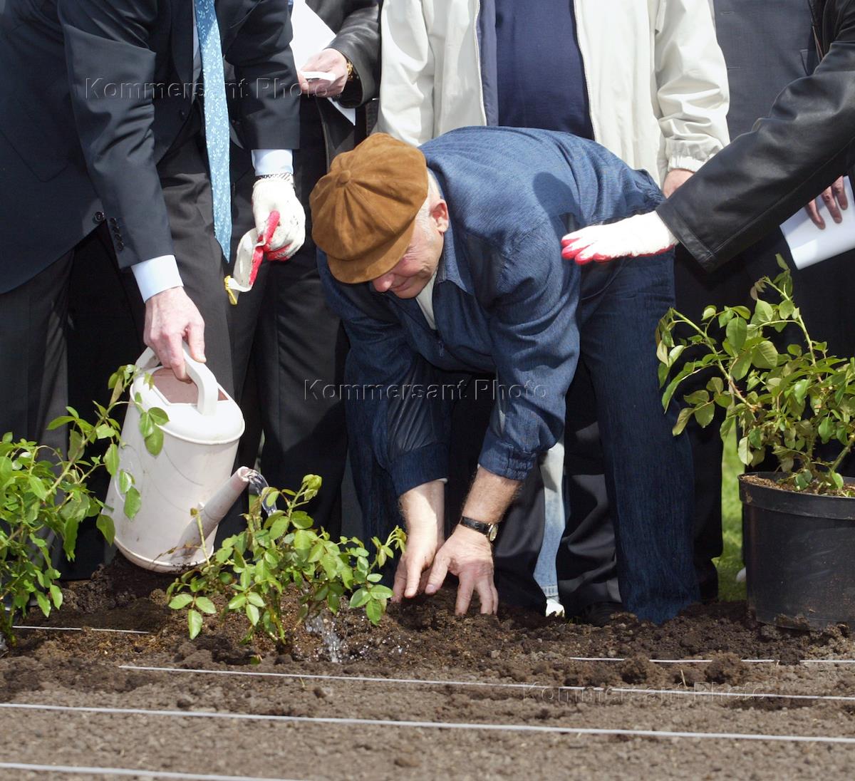 Мэр Москвы Юрий Лужков сажает деревья во время проведения субботника на Поклонной горе.