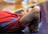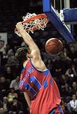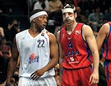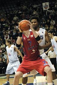 Второй матч первого раунда плей-офф чемпионата России по баскетболу среди мужчин между командами "ЦСКА" (Москва) и "Урал-Грейт" (Пермь). Встреча завершилась победой армейской команды со счётом 96:84. Баскетболист ЦСКА Теодорос Папалукас (справа) во время встречи. Матч прошел в спортивном комплексе "ЦСКА".