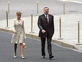 Празднование 60- летия Победы во Второй Мировой Войне. Президент Азербайджана Ильхам Алиев (справа) вместе с супругой Мехрибан (слева) перед началом военного парада на Красной площади.