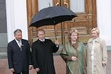 Празднование 60 - летия Победы во Второй Мировой Войне. Президент России Владимир Путин с супругой Людмилой (слева) и президент США Джордж Буш с супругой Лорой (справа) во время встречи.