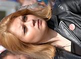 Участница митинга сторонников Коммунистической партии России (КПРФ), посвященного Дню Победы. Митинг прошел на площади у Белорусского вокзала.