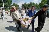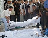 Вооруженный мятеж и многотысячный митинг в центре города, участники которого обвиняют власти в отсутствии демократии и свободы. В ночь на пятницу 13 мая 2005 года группа боевиков из исламской организации "Хизб-ут-Тахрир" напала на здание городской тюрьмы и освободила, по разным оценкам, от 2 до 4 тысяч заключенных. Мятежники завладели оружием и захватили здание областной администрации. В ходе столкновений с правительственными войсками число жертв в Андижане до сих пор неизвестно. По разным данным там погибли от нескольких десятков до нескольких сот человек. Вывоз разбитых и перевернутых автомобилей из города.