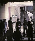 Взрыв во дворе девятиэтажного жилого дома по улице Алиева, напротив здания Советского районного отдела милиции. Во время взрыва погиб министр по национальной политике, информации и внешним связям Дагестана Загир Арухов. Сотрудники правоохранительных органов осматривают место взрыва.