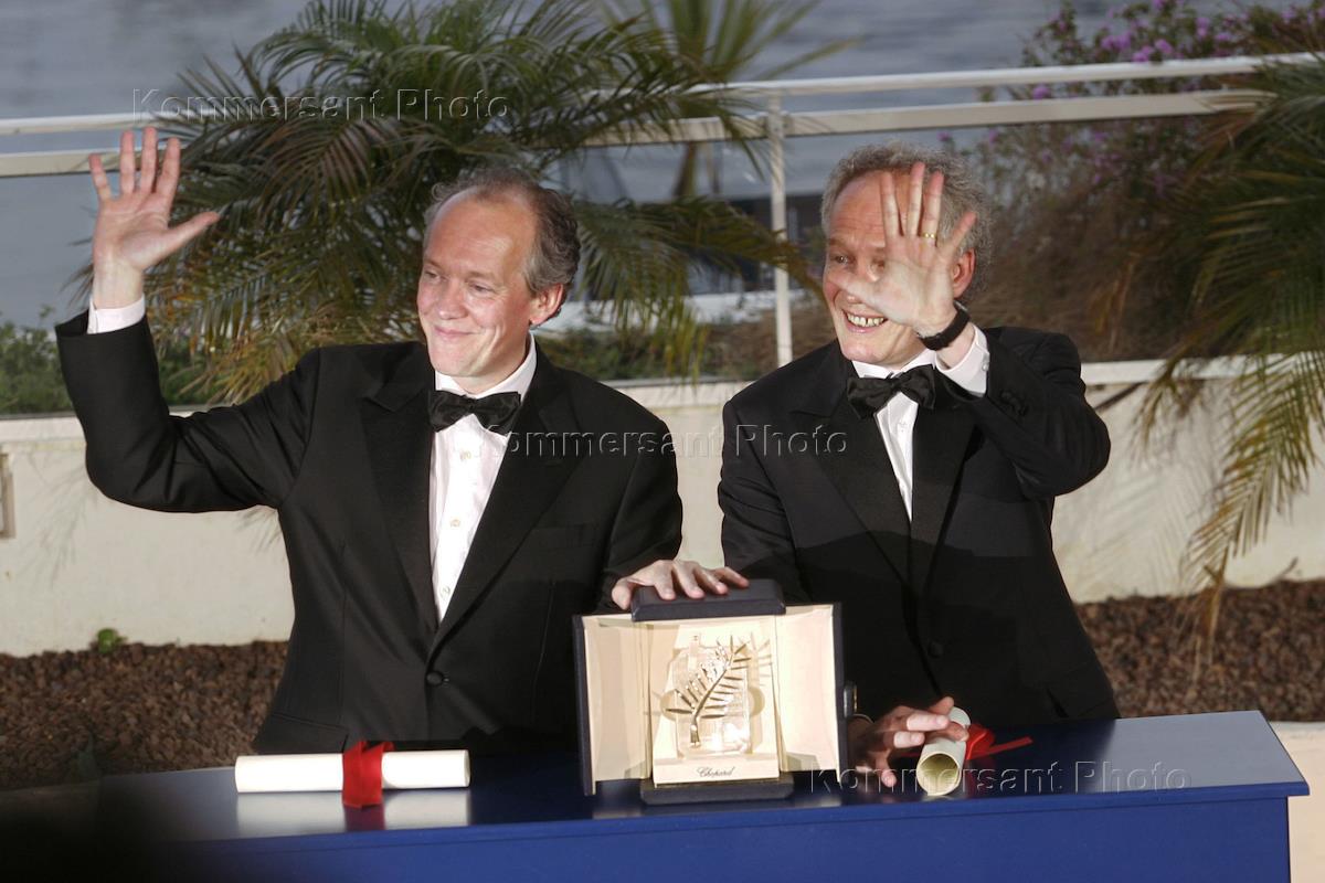 Бельгийские режиссеры братья Жан-Пьер и Люк Дарденны на церемонии закрытия 58 - ого Международного Каннского кинофестиваля. Братья Дарденны получили Золотую пальмовую ветвь за свой фильм "Дитя".