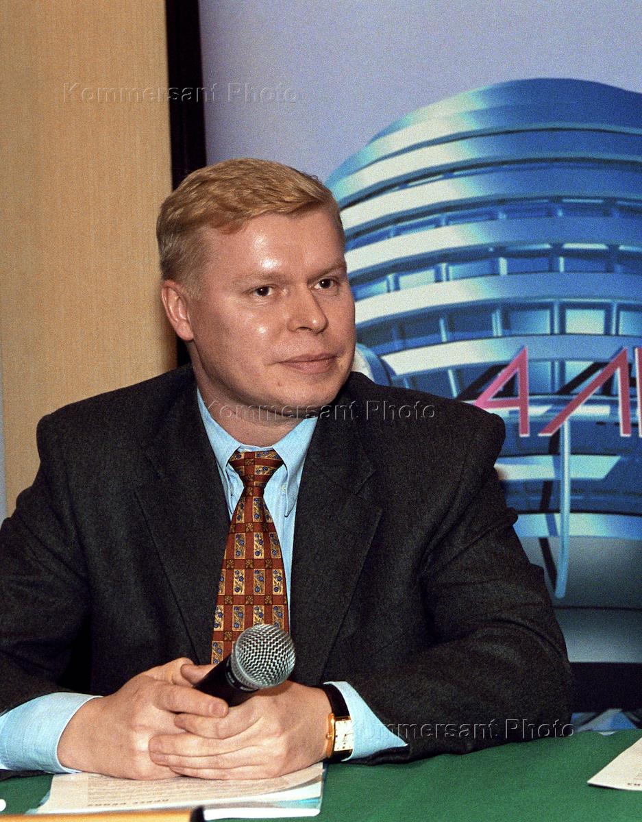 Alfa Bank Treasury Director Teijo Pankko attends press conference.