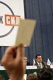 Внеочередной съезд партии "Союз правых сил". Съезд прошел в Октябрьском зале Дома Союзов. Образец избирательного бюллетеня.