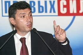 Бывший председатель партии "Союз правых сил" (СПС) Борис Немцов на внеочередном съезде партии "СПС". Съезд прошел в Октябрьском зале Дома Союзов.