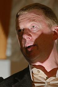 Президент Всероссийской ассоциации приватизируемых и частных предприятий Григорий Томчин на внеочередном съезде партии "Союз Правых Сил". Съезд прошел в Октябрьском зале Дома Союзов.