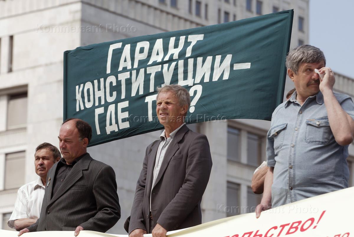 Митинг протеста инвалидов - чернобыльцев у Дома Правительства на Горбатом мосту. Акция прошла под лозунгом "Верните все украденное!".