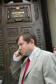 Лидер общественной общероссийской организации "За достойную жизнь", депутат Государственной Думы России Сергей Глазьев после заседания Верховного суда России, где рассматривалось исковое заявление Коммунистической партии России (КПРФ) с просьбой отменить как незаконное решение Центризбиркома, признавшего не соответствующими законодательству 15 из 17 вопросов, предлагаемых коммунистами для всероссийского референдума.