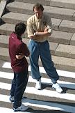 Игрок футбольной команды "ЦСКА" Евгений Алдонин (справа) на "Дне открытых дверей" национальной и молодежной сборных России по футболу в пансионате управления делами Президента России "Бор".
