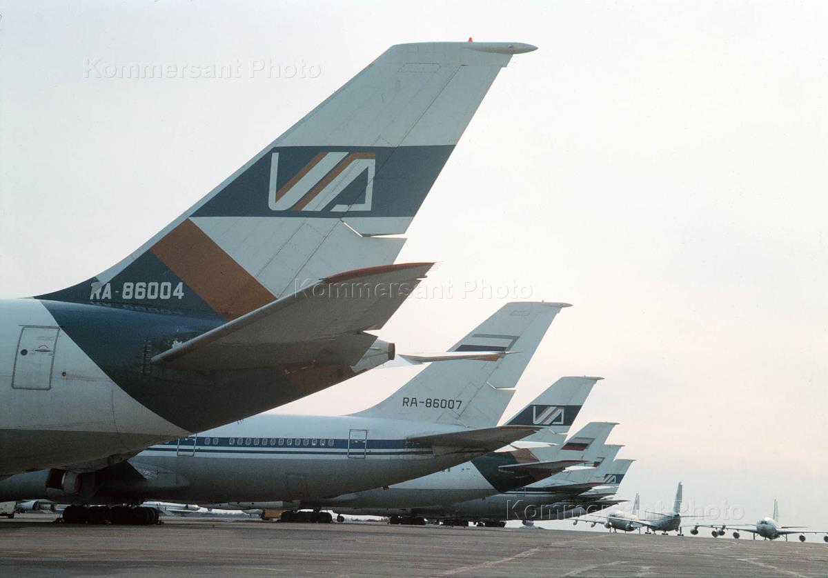 Airplanes awaiting takeoff at Moscow airport Vnukova.