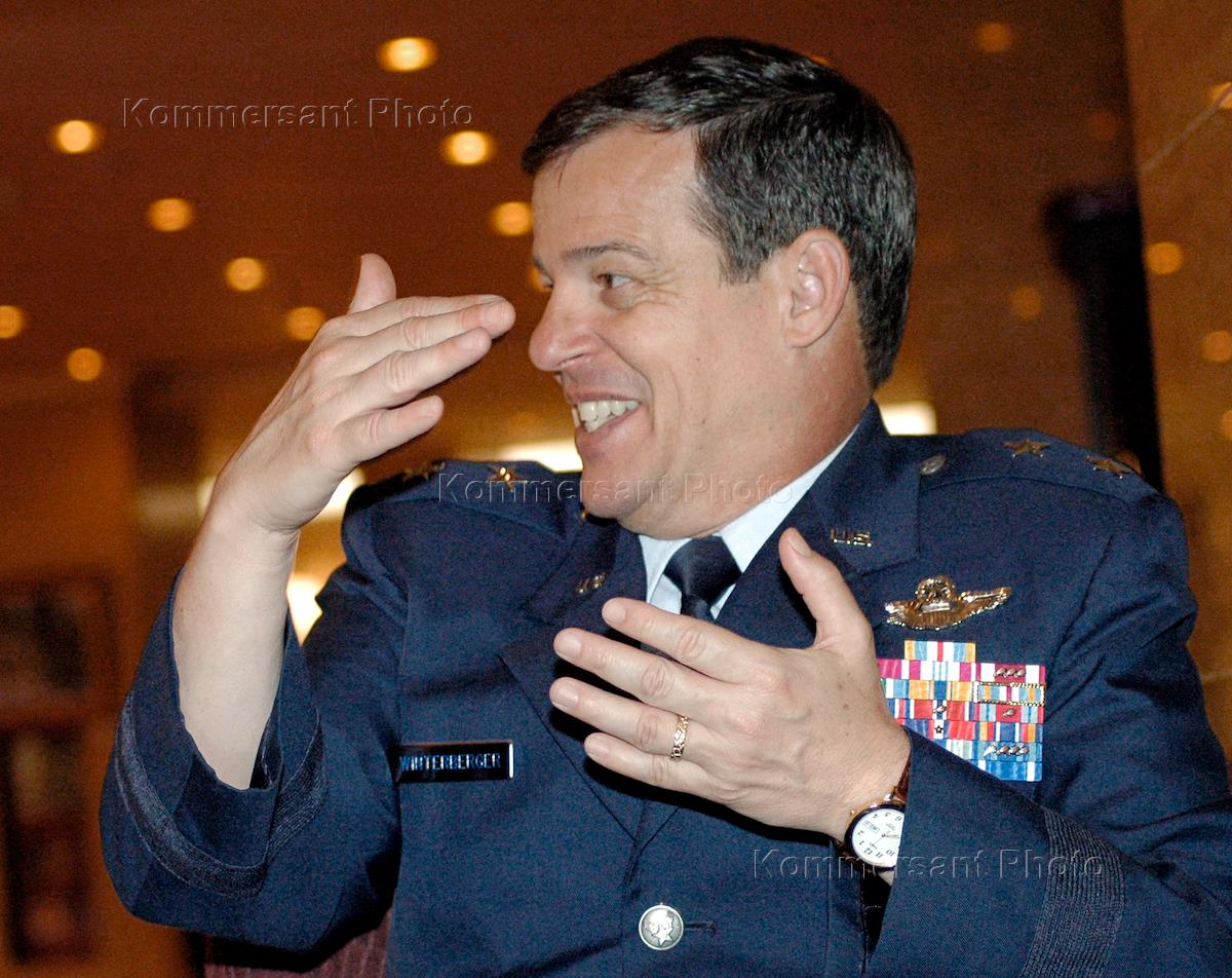 Командующий силами дальнего радиолокационного обнаружения НАТО генерал-лейтенант Гарри Уинтерберг на встрече с журналистами в гостинице "Рэдиссон Славянская".