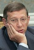 Председатель совета директоров АФК "Система" Владимир Евтушенков во время пресс-конференции, на которой была представлена финансовая отчетность корпорации и дочерних компаний в соответствии со стандартами US GAAP за 2004 год. Пресс-конференция прошла в офисе АФК "Система".