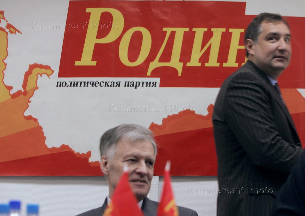 Сопредседатель партии "Родина" Юрий Скоков (справа) и руководитель фракции "Родина" в Государственной Думе России Дмитрий Рогозин (слева) во время Всероссийского совещания депутатов представительных органов власти субъектов России от партии "Родина" в преддверии 5-го внеочередного съезда партии "Родина". Совещание прошло в гостиничном комплексе "Измайлово".