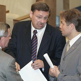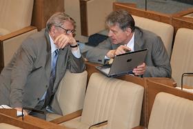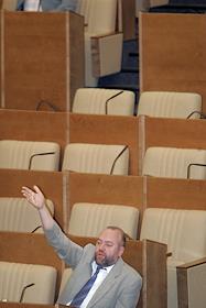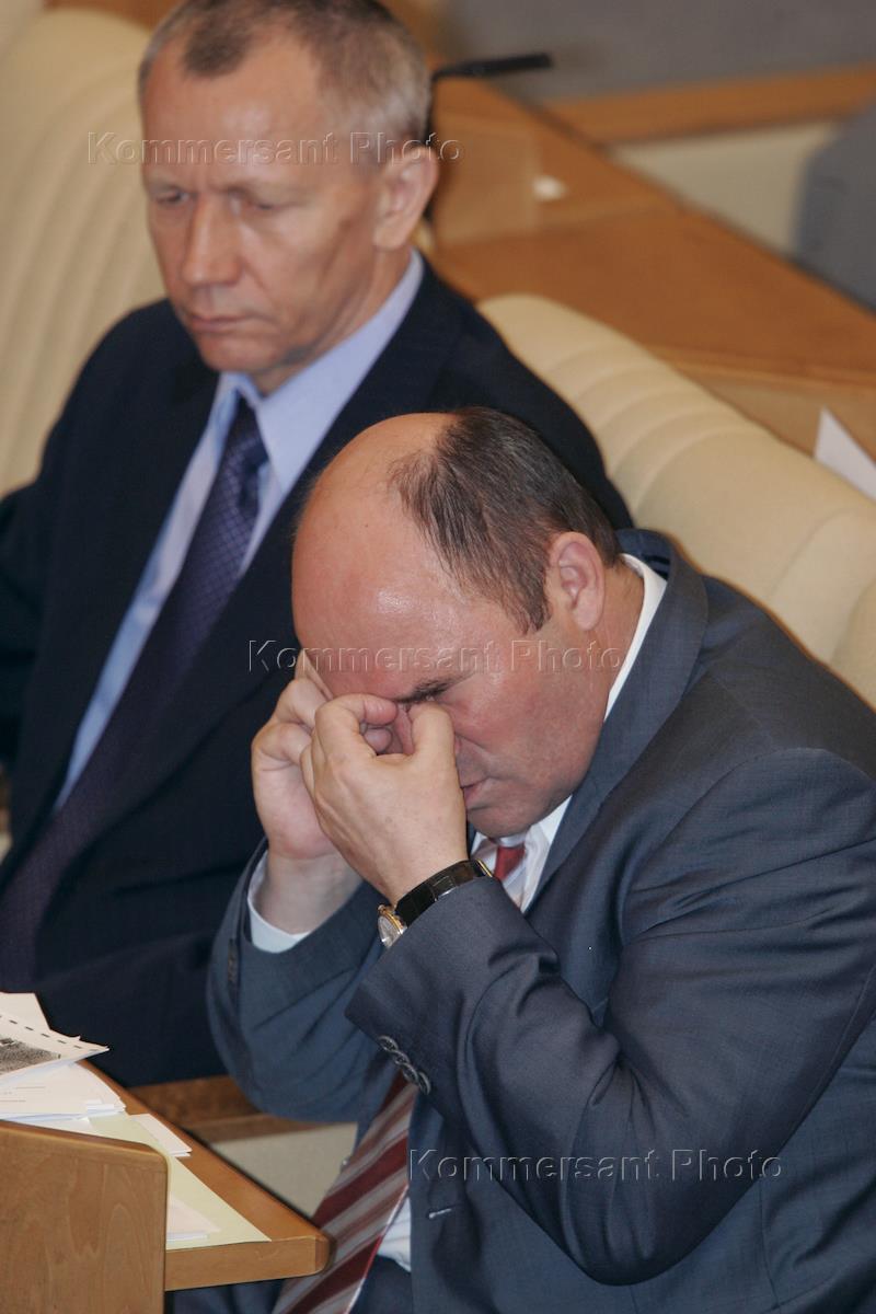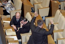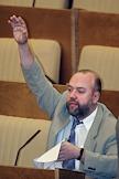 Член Комитета Государственной Думы России по вопросам местного самоуправления Георгий Леонтьев (справа) на очередном думском заседании.