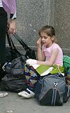 Девочка - пассажир поезда № 382 "Грозный — Москва" сидит на перроне на Павелецкого вокзала. На участке Узуново-Богатищево Павелецкой железной дороги на 153-м км от Москвы сошли с рельсов четыре вагона поезда № 382 Грозный — Москва. По предварительным заключениям взрывотехников ФСБ, на пути следования поезда сработало безоболочное взрывное устройство мощностью три килограмма в тротиловом эквиваленте, несколько человек ранены.