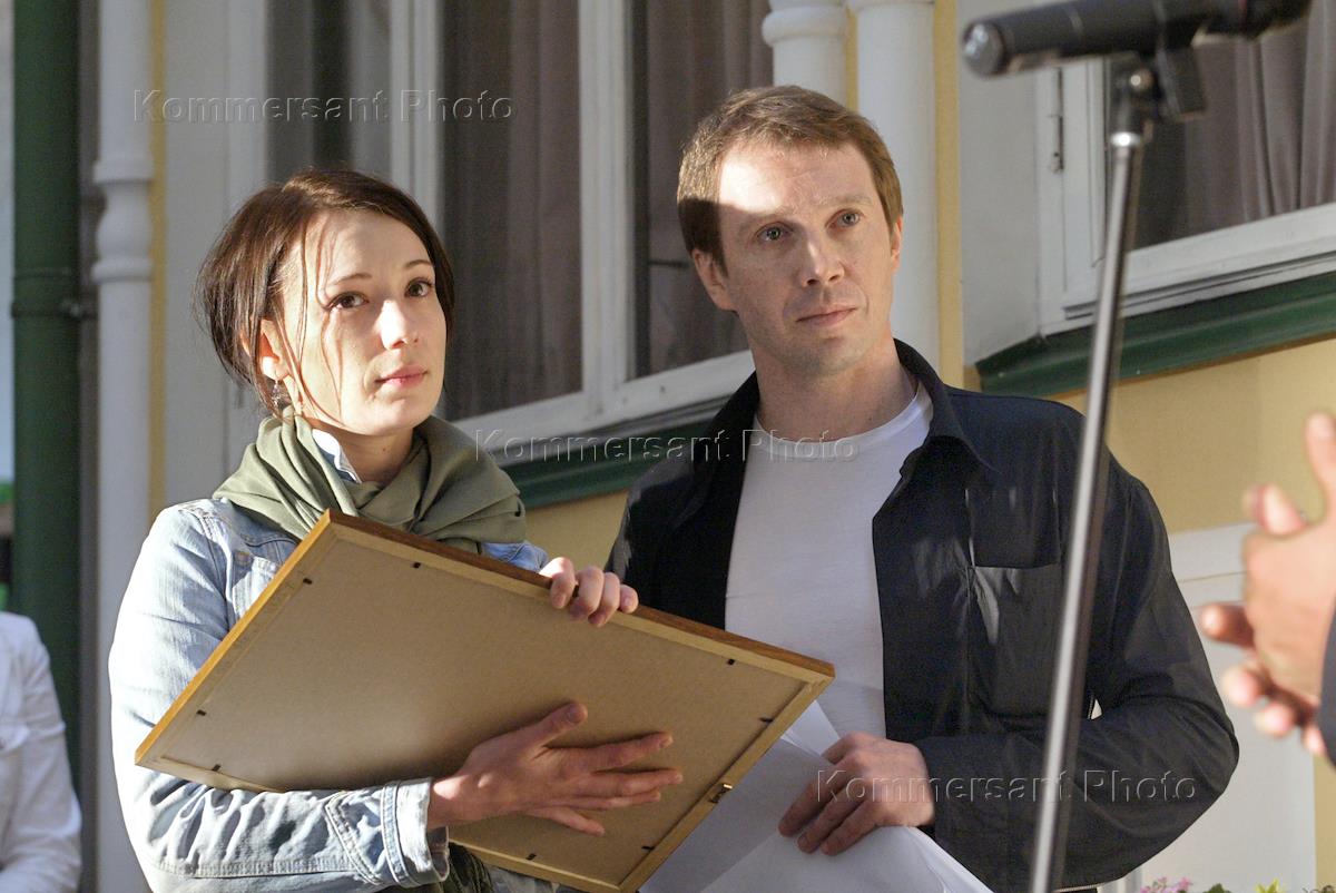 Актеры Чулпан Хаматова (слева) и Евгений Миронов (справа) на церемонии вручения театральной премии "Акция". Церемония прошла в ресторане "Обломов".