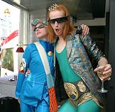 Председатель оргкомитета партии "Свободная Россия" Ирина Хакамада (слева) и шоумен Александр Цекало (справа) на презентации фотопроекта художника - концептуалиста Влада Мамышева - Монро в ресторане "Ваниль".