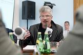 Сопредседатель Совета по национальной стратегии Иосиф Дискин на экспертной дискуссии "Российский триколор с "оранжевым" оттенком, или Факторы нестабильности 2005 - 2008". Дискуссия прошла в ИА "Росбалт".