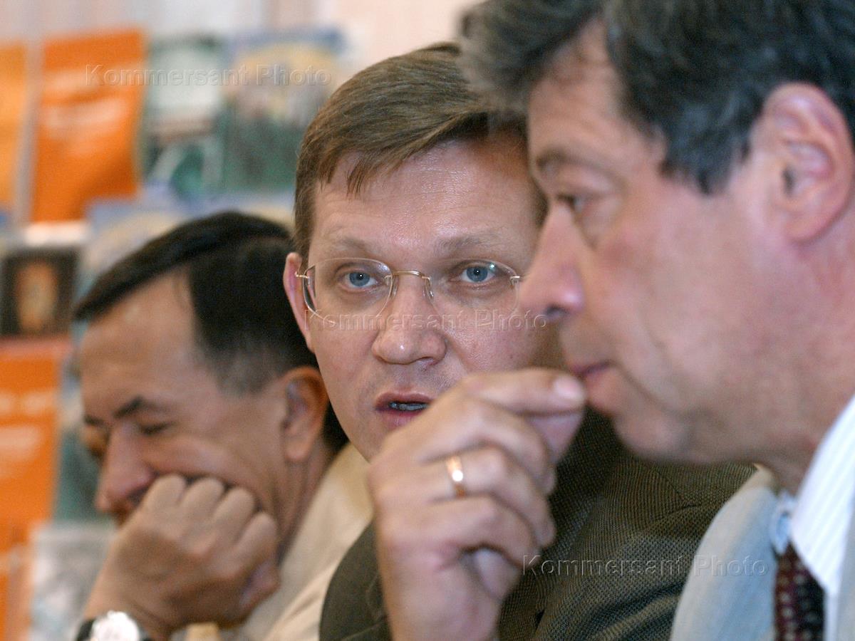 Член Комитета Государственной Думы России по делам Федерации и региональной политике Владимир Рыжков (в центре) во время пресс-конференции на тему: "Второе рождение Республиканской партии России". Пресс-конференция прошла "Независимом пресс-центре".