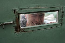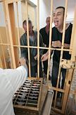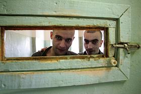 Орловская психиатрическая больница специализированного типа с интенсивным наблюдением. Отделение судебно - психиатрической экспертизы, где проходит обследование граждан, совершивших уголовные преступления. Пациенты у дверного окна.