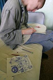 Орловская психиатрическая больница специализированного типа с интенсивным наблюдением. Отделение судебно - психиатрической экспертизы, где проходит обследование граждан, совершивших уголовные преступления. Пациент в палате рисует.