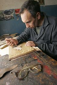 Орловская психиатрическая больница специализированного типа с интенсивным наблюдением. Отделение судебно - психиатрической экспертизы, где проходит обследование граждан, совершивших уголовные преступления. Пациент занимается резьбой по дереву.