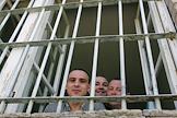 Орловская психиатрическая больница специализированного типа с интенсивным наблюдением. Отделение судебно - психиатрической экспертизы, где проходит обследование граждан, совершивших уголовные преступления. Пациенты за решеткой в окне.