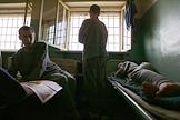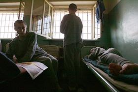 Орловская психиатрическая больница специализированного типа с интенсивным наблюдением. Отделение судебно - психиатрической экспертизы, где проходит обследование граждан, совершивших уголовные преступления. Пациенты сидят на кроватях в своей палате.