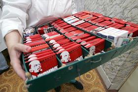 Раздача сигарет больным в Орловской психиатрической больнице специализированного типа с интенсивным наблюдением. Отделение судебно - психиатрической экспертизы, где проходит обследование граждан, совершивших уголовные преступления.
