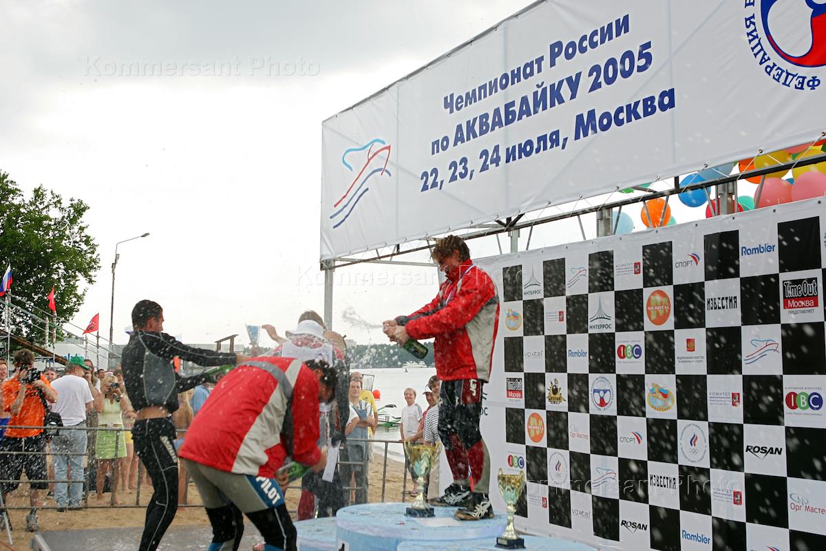 Бывший председатель СПС Борис Немцов (слева) на III чемпионате России по аквабайку. Чемпионат прошел на водном стадионе "Динамо".