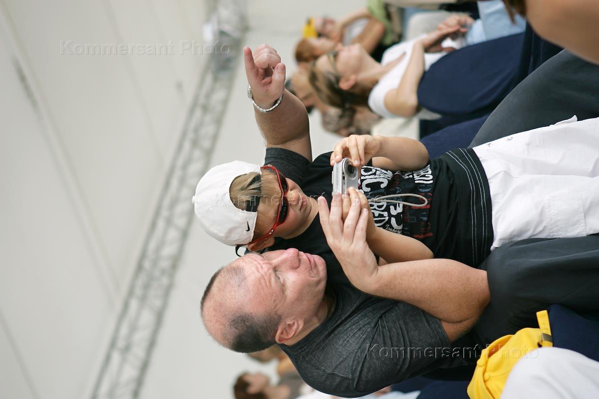 Президент компании "Интеррос" Владимир Потанин сыном Василием на III чемпионате России по аквабайку. Чемпионат прошел на водном стадионе "Динамо".