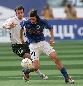 Чемпионат России по футболу. Нападающий команды "Торпедо" Александр Панов (слева) во время матча "Торпедо" (Москва) - "Динамо" (Москва) (2:1). Матч прошел на стадионе "Лужники".