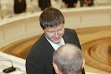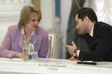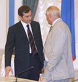 Пресс-секретарь Президента России Алексей Громов (справа) во время обсуждения перспективы создания в России Общественной палаты. Обсуждение прошло в Кремле.