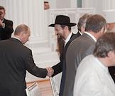 Главный раввин Федерации еврейских общин России Берл Лазар (второй слева) и председатель отдела внешних церковных связей Московского патриархата митрополит Смоленский и Калининградский Кирилл (второй справа) во время обсуждения перспективы создания в России Общественной палаты. Обсуждение прошло в Кремле.