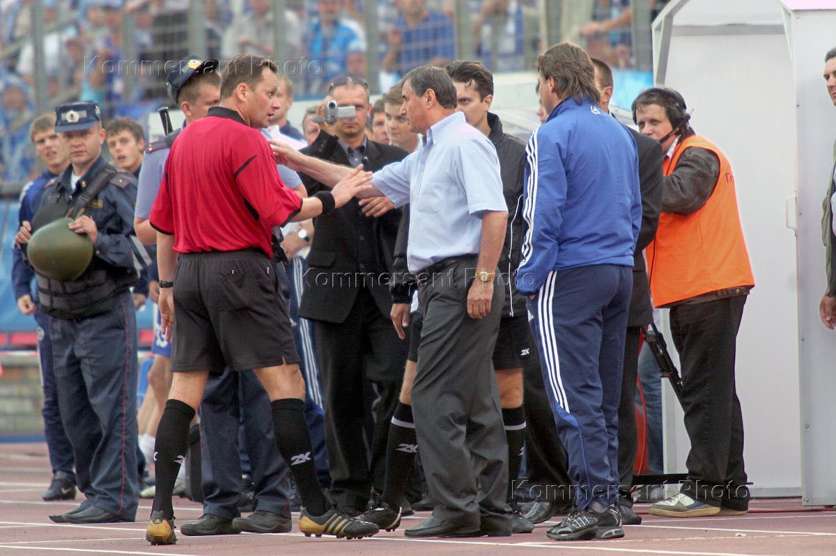 Тренер-консультант футбольной команды "Томь" Анатолий Бышовец (в центре) во время футбольного матча 19 — ого тура чемпионата России по футболу между командами "Зенит" (Санкт-Петербург) и "Томь" (Томск) на стадионе "Петровский". Встреча завершилась со счетом 1 : 0 в пользу "Зенита".