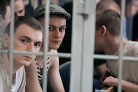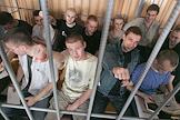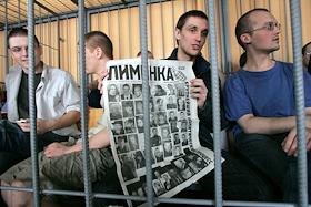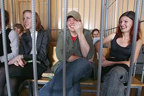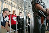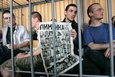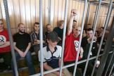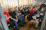 Выездное заседание Тверского суда по делу 39 активистов Национал-большевистской партии (НБП). "Лимоновцы" задержаны по обвинению в захвате общественной приемной администрации Президента России. Заседание состоялось в Никулинском суде.