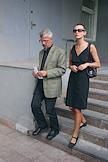 Писатель, лидер Национал-большевистской партии (НБП) Эдуард Лимонов (слева) и актриса Екатерина Волкова (справа) у входа в здание Никулинского межмуниципального суда, где прошли слушания по делу 40 активистов Национал-большевистской партии, обвиняемых в захвате 14 декабря 2004 года помещения общественной приемной администрации Президента России.