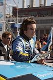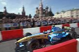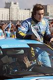 Пилот команды "Рено" Фернандо Алонсо перед началом заезда гонщиков "Mild Seven Renault F 1 Team". Заезд состоялся на Москворецкой набережной.