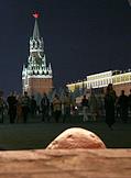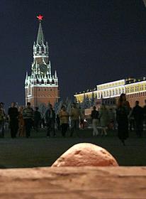 Виды ночной Москвы. Спасская башня Кремля на Красной площади.