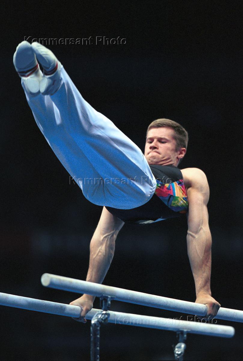 Лидер российской сборной по спортивной гимнастике Алексей Немов во время выступления на XXVII летних Олимпийских играх.