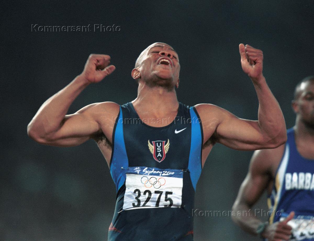 Американский спринтер Морис Грин после выступления на XXVII летних Олимпийских играх.