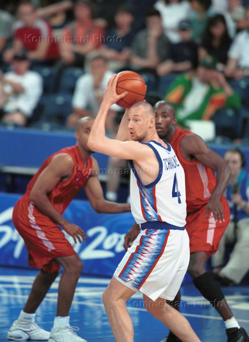 Член сборной России по баскетболу Андрей Кириленко во время матча на Олимпийских играх в Сиднее.