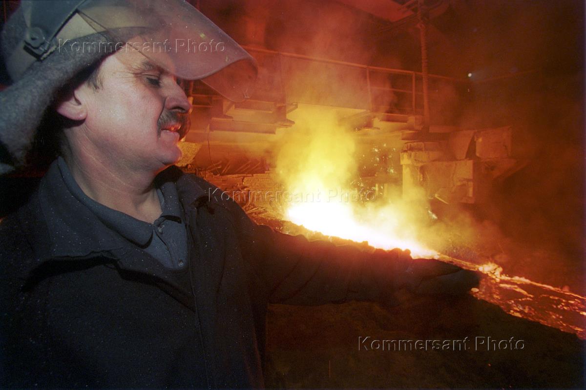 Процесс варки стали в одном из литейных цехов Магнитогорского металлургического комбината.