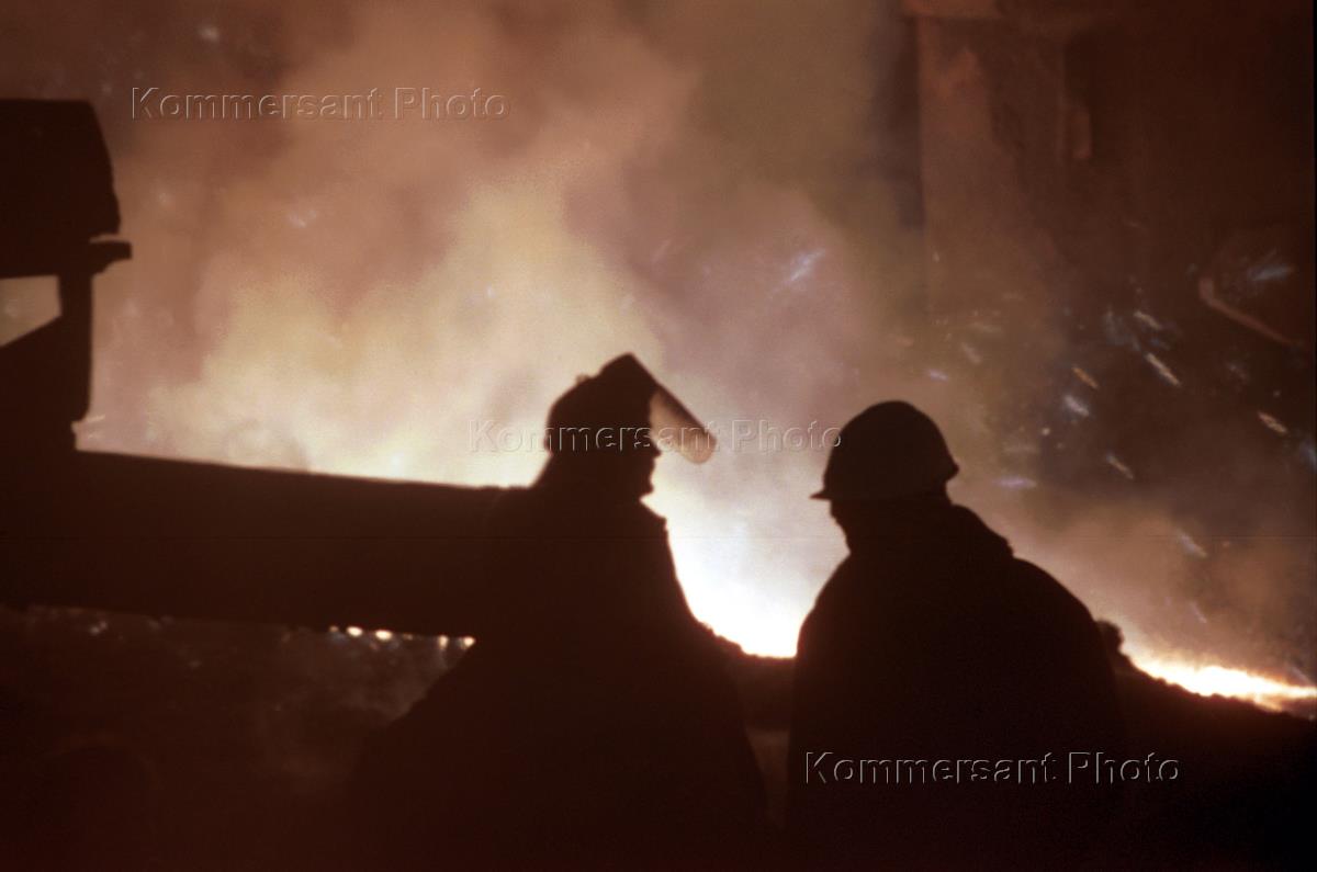 Процесс варки стали в одном из литейных цехов Магнитогорского металлургического комбината.