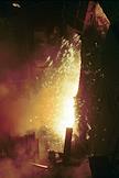 Расплавленный металл, извергающий искры на Магнитогорском металлургическом заводе.